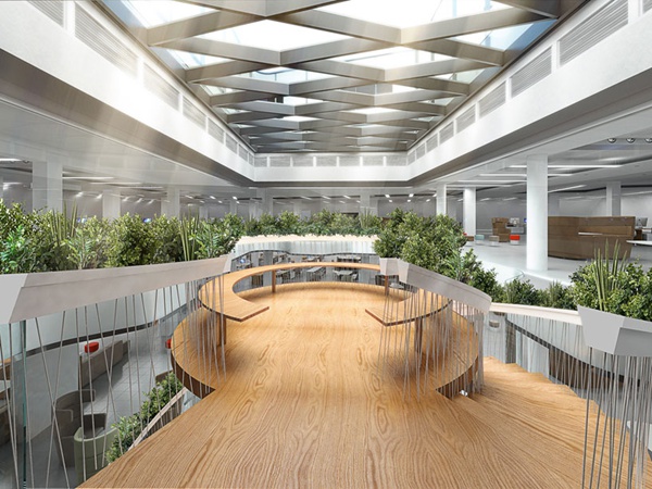 樓梯不僅僅是個(gè)過渡區(qū)域,還可以兼?zhèn)淦渌δ?,比如空中花園。在倫敦的一處辦公區(qū)域里,設(shè)計(jì)師把承重柱在中間的傳統(tǒng)樓梯變成螺旋結(jié)構(gòu)的The Living Staircase,沿著欄桿種滿植物,還設(shè)有圓形平臺,成為可以讓上班族在此休息放松的公共區(qū)域。設(shè)計(jì)源自 Paul Cocksedge Studio。